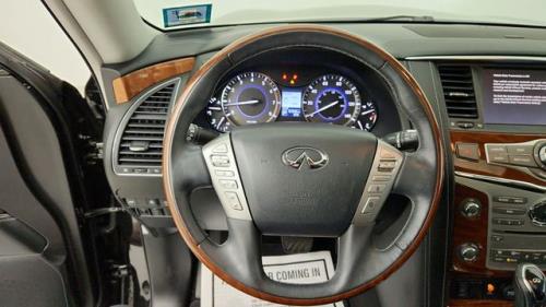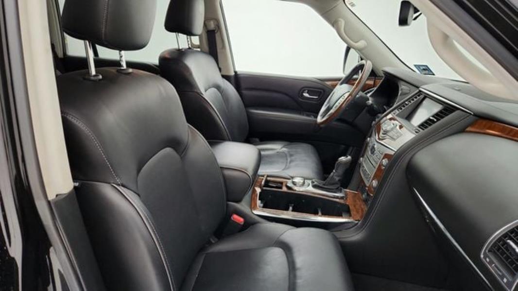 KEY FEATURES AND OPTIONS Comes equipped with: [f01] Driver Assistance Package, [w01] Tire & Wheel Package, Graphite, Leather-Appointed Seats with Stratford Burl Trim, Mineral Black. This INFINITI QX80 also includes Power Driver's Seat, Clock, Climate Control, Power Passenger Seat, Tachometer, Multi-Zone Climate Control, Memory Seat Position, Cruise Control, Homelink System, Privacy Glass/Tinted Windows, Power Steering, Telescoping Steering Wheel, Rear Air Conditioning, Steering Radio Controls, Wood Trim, Sunroof, Power Mirrors, Moonroof, Leather Steering Wheel, Driver Airbag, Fog Lights, Passenger Airbag, Intermittent Wipers, Side Airbags, Rear Defogger, Security System, AM/FM, CD Player, Subwoofer, Touch Screen, Satellite Radio, Sliding Rear Window, Bluetooth, Navigation System, Rear Spoiler, Running Boards, 3rd Row Seating, Rear Wipers, Center Arm Rest, Remote Trunk Lid, Vanity Mirrors, Heated Mirrors, Child Proof Door Locks, Daytime Running Lights, Parking Sensors, Reverse Camera, Side Curtain Airbags, Roll Stability Control, Power Lift Gate, Tire Pressure Monitor, Carpeted Floor Mats, Overhead Console, Rear Radio Control, Aux. Audio Input, Front Heated Seats, HD Radio.