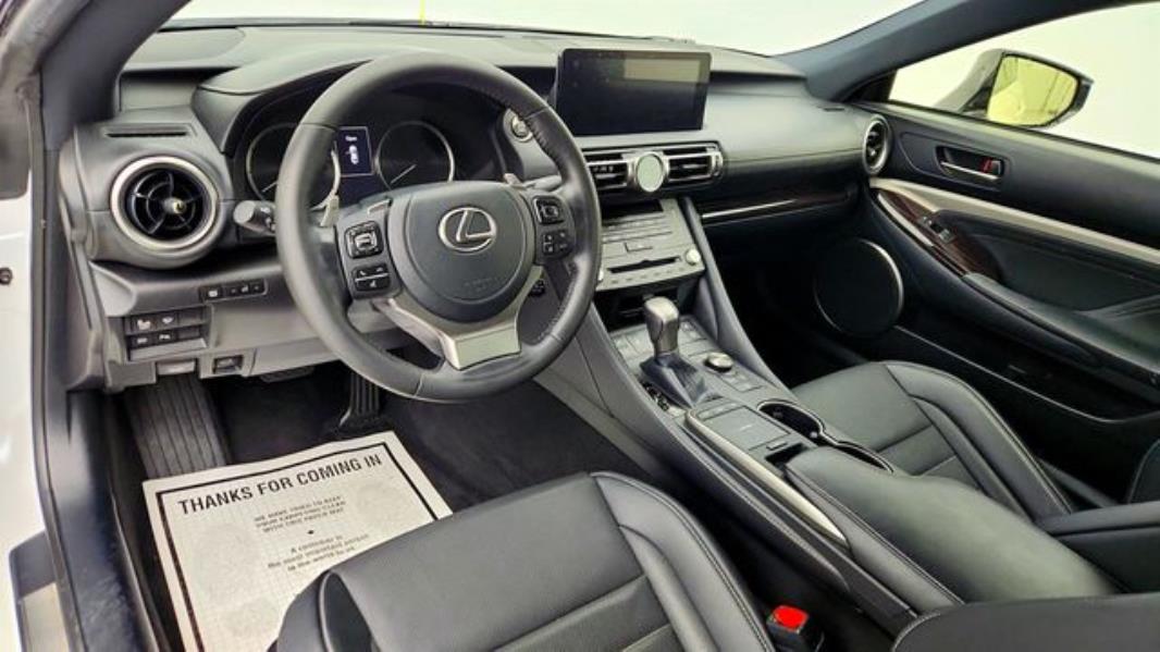 WARRANTY A Factory Warranty is included with this vehicle. Contact seller for more information. VERY LOW MILES! At just 22662 miles, this 2023 Lexus provides great value. KEY FEATURES AND OPTIONS Comes equipped with: All Weather Package, Black, Nuluxe Seat Trim, Eminent White Pearl, Moonroof with Power Tilt/Slide, Navigation System with Mark Levinson Audio Package, Premium Package. This Lexus RC also includes Air Conditioning, Power Driver's Seat, Clock, Climate Control, Power Passenger Seat, Tachometer, Multi-Zone Climate Control, Memory Seat Position, Homelink System, Power Steering, Telescoping Steering Wheel, Power Windows, Steering Radio Controls, Wood Trim, Power Mirrors, Leather Steering Wheel, Driver Airbag, Passenger Airbag, Intermittent Wipers, Side Airbags, Rear Defogger, Security System, AM/FM, Anti-Theft, CD Player, Satellite Radio, Navigation System, Center Arm Rest, Cup Holders, Remote Fuel Door, Remote Trunk Lid, Vanity Mirrors, Heated Mirrors, Daytime Running Lights, Reverse Camera, Side Curtain Airbags, Roll Stability Control, Tire Pressure Monitor, Premium Sound, Carpeted Floor Mats, Overhead Console, Aux. Audio Input, HD Radio.